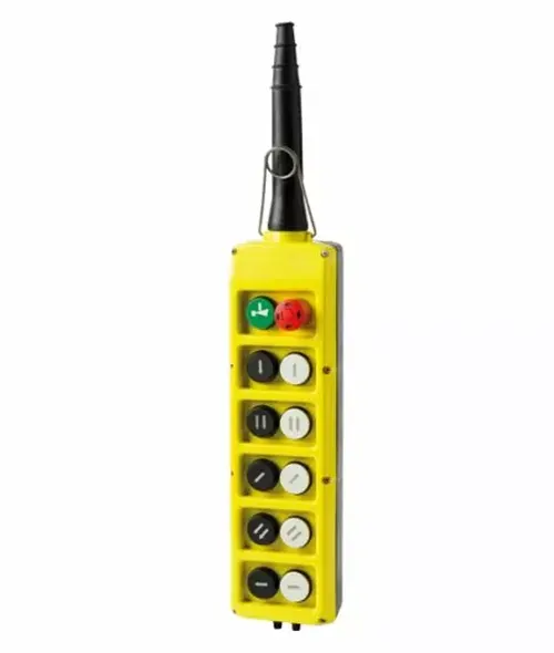 Crane pendant push button switches are durable, ergonomic, and resistant to dust, moisture, and impact. They enhance operator comfort, safety, and control, making them ideal for harsh industrial environments.